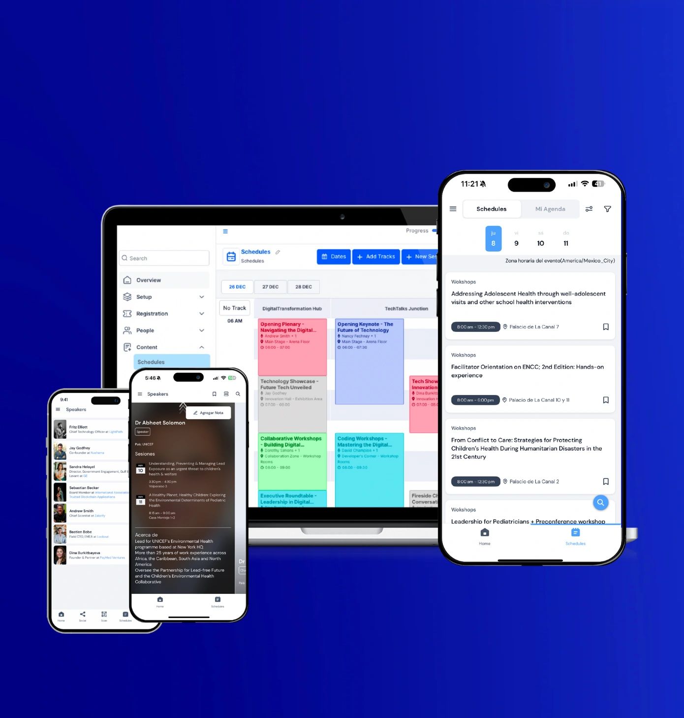 Organiza la agenda de tu evento y gestiona ponentes de forma dinámica y sin complicaciones.
